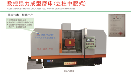 以桂北機器旗下數(shù)控強力成型磨床(立柱中腰式)MKL7132系列為例。該系列磨床橫向?qū)к壷糜诹⒅胁績蓚?cè),運行平穩(wěn),進給靈敏。具有成型及平面磨削加工功能,對飛機、船舶、汽車機車、液壓元件等制造行業(yè)的發(fā)動機渦輪、葉片樅樹根或鎖片槽、轉(zhuǎn)向螺母齒部、擺線泵轉(zhuǎn)子及游標卡尺等復雜機械零件型面的成形磨削加工,工作精度,定位精度和重復定位精度高。