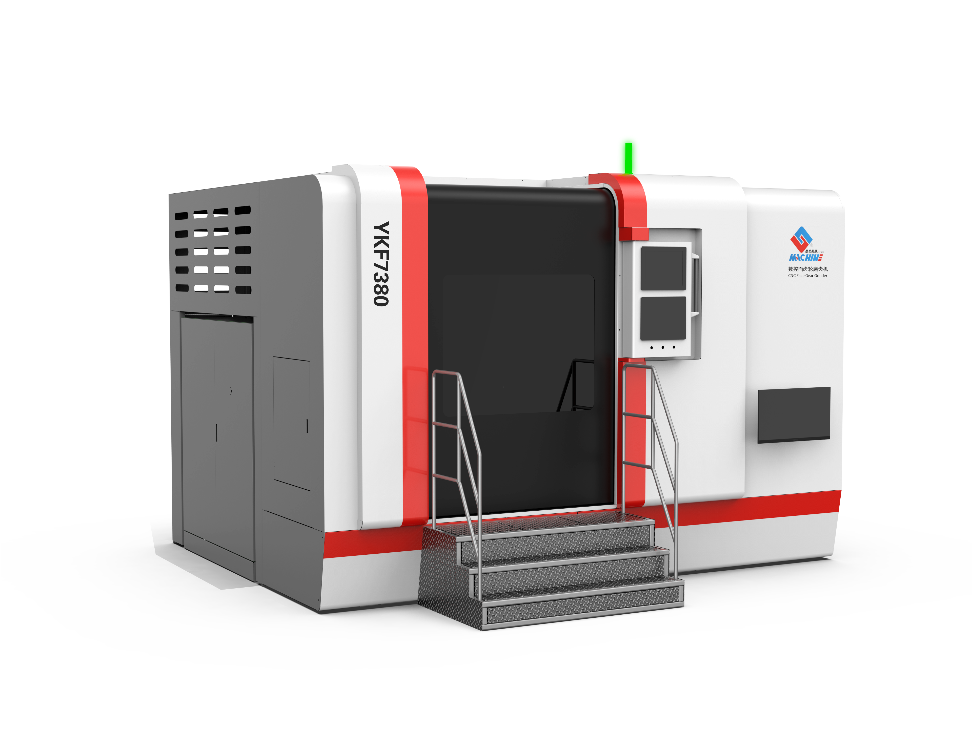 “全尺寸大空間高精度數(shù)控面齒輪磨齒機(jī)(型號(hào):YKF7380)”是桂林桂北機(jī)器有限責(zé)任公司針對(duì)面齒輪加工難題,聯(lián)合北京航空航天大學(xué)成功研制的國內(nèi)首臺(tái)八軸五聯(lián)動(dòng)數(shù)控面齒輪廣域磨削專用機(jī)床。該機(jī)床具備全尺寸設(shè)計(jì)、大空間結(jié)構(gòu)和高精度加工的特點(diǎn),工件可加工尺寸范圍大,加工直徑范圍Ф50~850mm,模數(shù)1~12,適用于航空、兵器、工程機(jī)械、高端機(jī)床等多領(lǐng)域,相關(guān)技術(shù)達(dá)到國際先進(jìn)水平,其中大展成加工空間和大接觸區(qū)面積等部分技術(shù)指標(biāo)達(dá)到國際領(lǐng)先水平,填補(bǔ)了國內(nèi)技術(shù)空白,促進(jìn)了國產(chǎn)面齒輪產(chǎn)品質(zhì)量躍升和產(chǎn)業(yè)鏈體系自主可控。